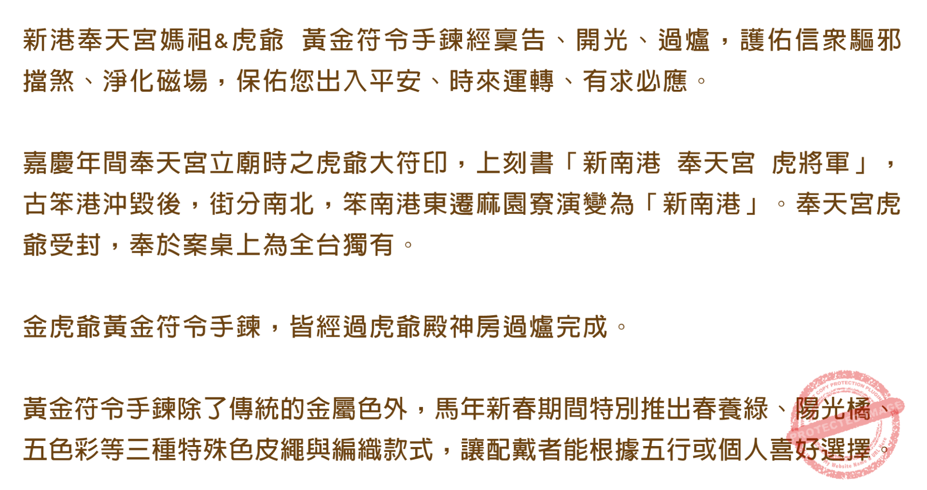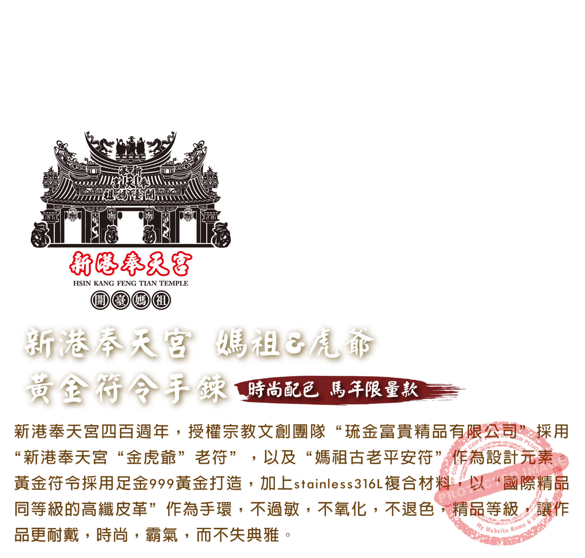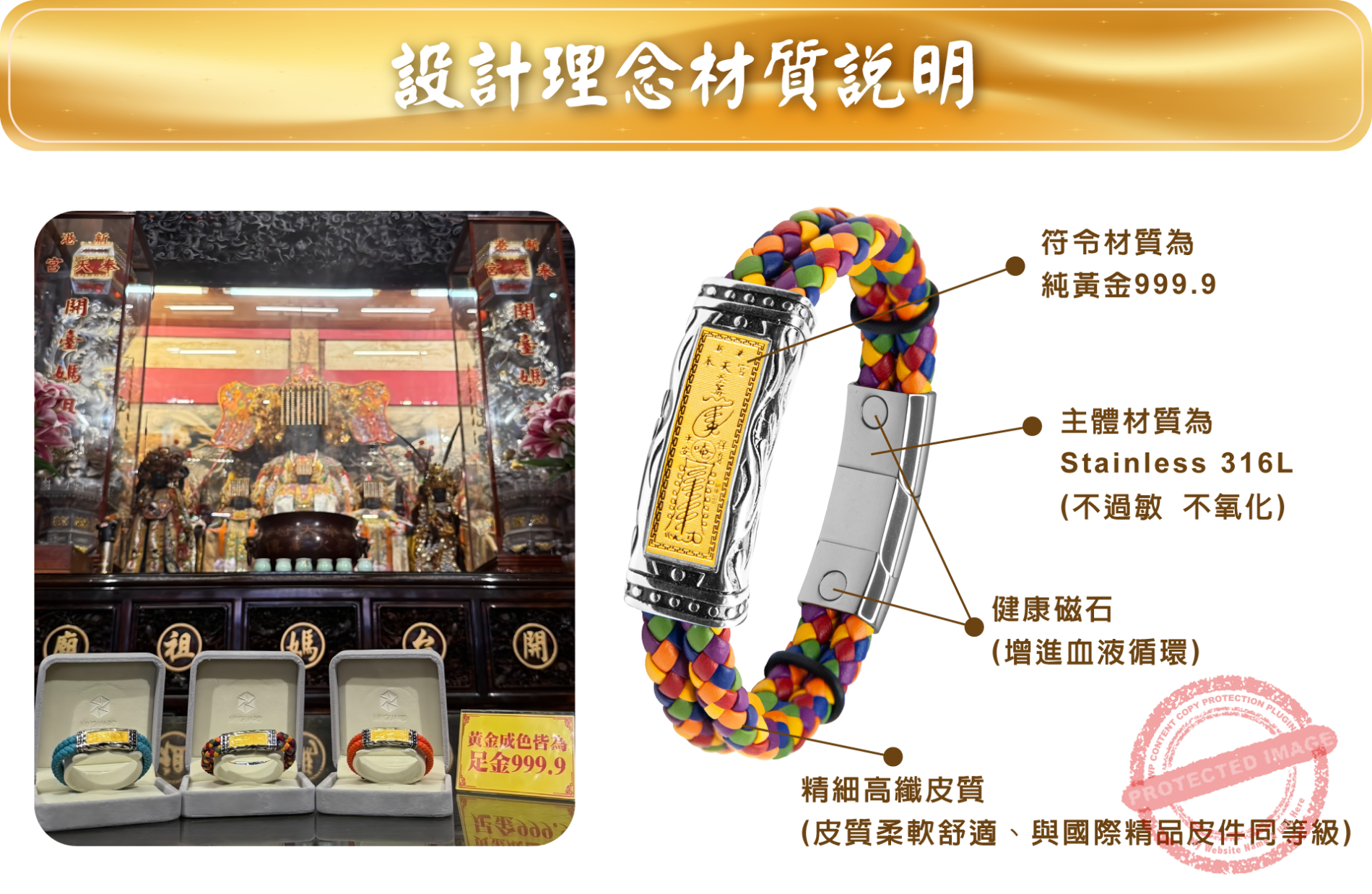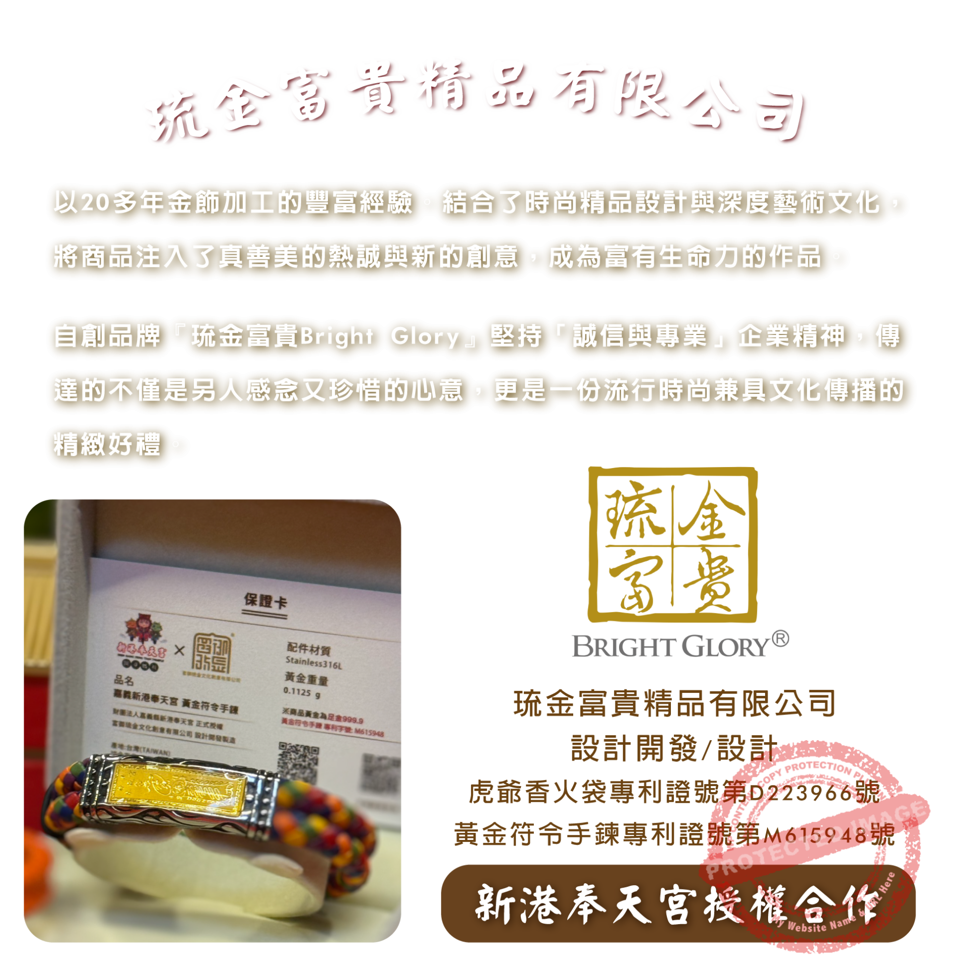 我們黃金符令手鍊是以足金999.9打造,每一件商品皆有保證書。